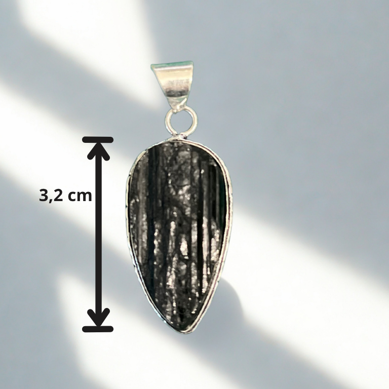 - Pietra: Tormalina Nera grezza naturale (forma e sfumature possono variare leggermente)