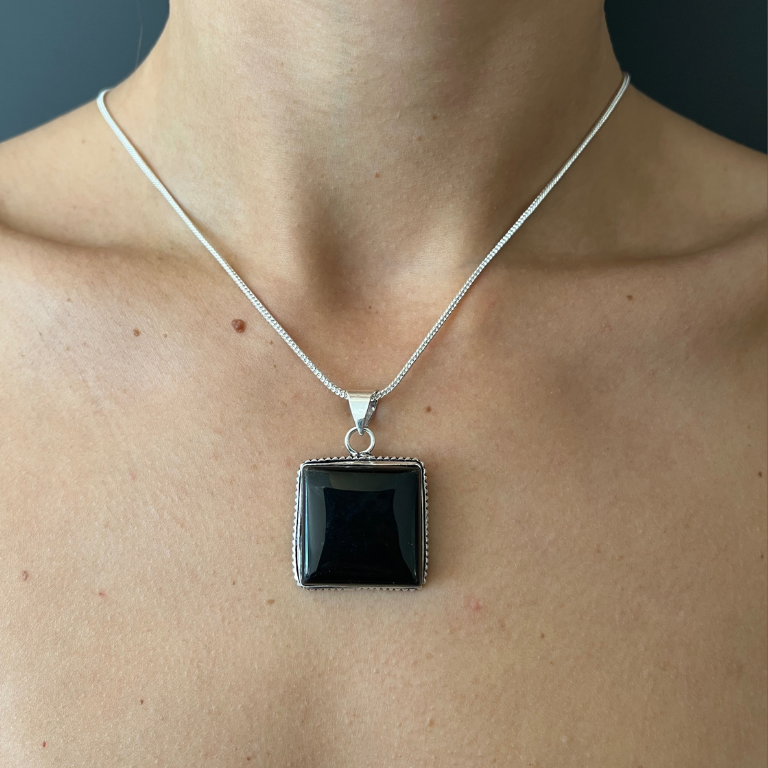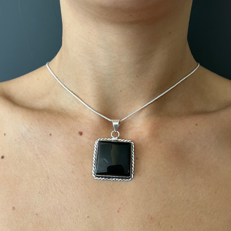 Scopri i nostri ciondoli in Onice Nero naturale, perfetti per chi cerca un gioiello elegante e allo stesso tempo carico di significato. Ogni ciondolo è unico, montato su base in ottone placcato in argento.