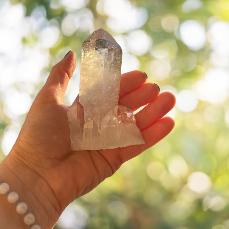 Questo meraviglioso cluster di Quarzo Ialino, anche detto Cristallo di Rocca, è un potente alleato per la tua energia quotidiana. Con le sue punte naturali perfettamente formate e trasparenti, emana una vibrazione di luce pura, capace di elevare la mente e purificare l’ambiente circostante.