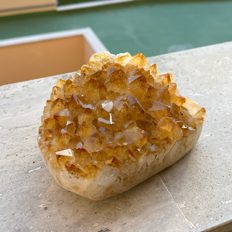Un’esplosione di luce dorata per la tua casa o il tuo spazio sacro. Questa splendida drusa di Citrino, con i suoi cristalli luminosi e vivaci, è conosciuta come pietra dell’abbondanza, della gioia e della forza interiore. Favorisce la fiducia, stimola la creatività e attira energia positiva. Perfetta per chi desidera manifestare nuovi inizi e accogliere prosperità e calore.