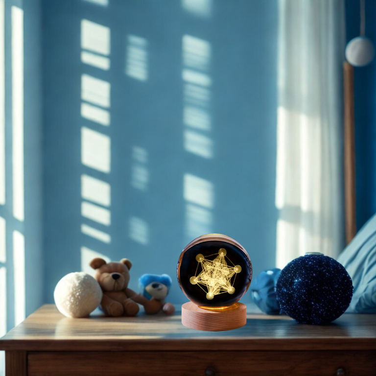 Lampada Sfera in Cristallo – Metatron o Fiore della Vita (6,5 × 7,5 cm)
