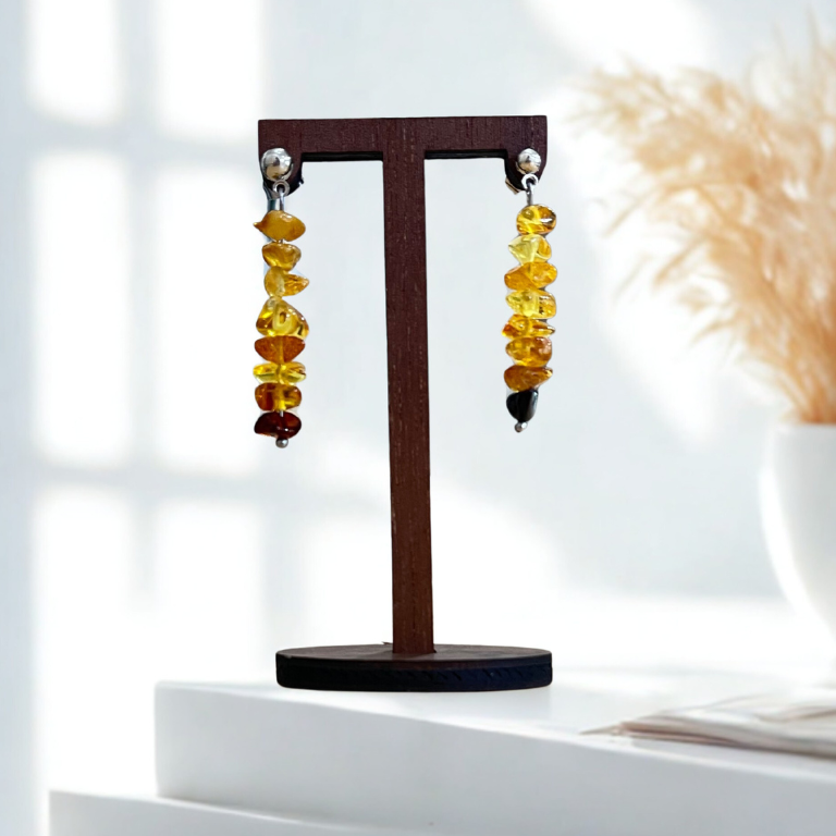 Questi orecchini in Ambra naturale catturano la luce e la trasformano in presenza.