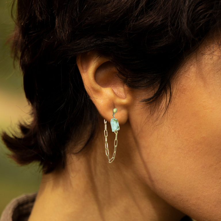 Scopri l'equilibrio perfetto tra eleganza e autenticità con i nostri orecchini artigianali con prehnite naturale.